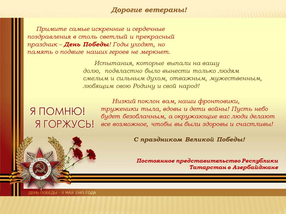 В Постоянном представительстве Татарстана в Азербайджане состоялось праздничное мероприятие, посвященное Дню Победы 8 ноября